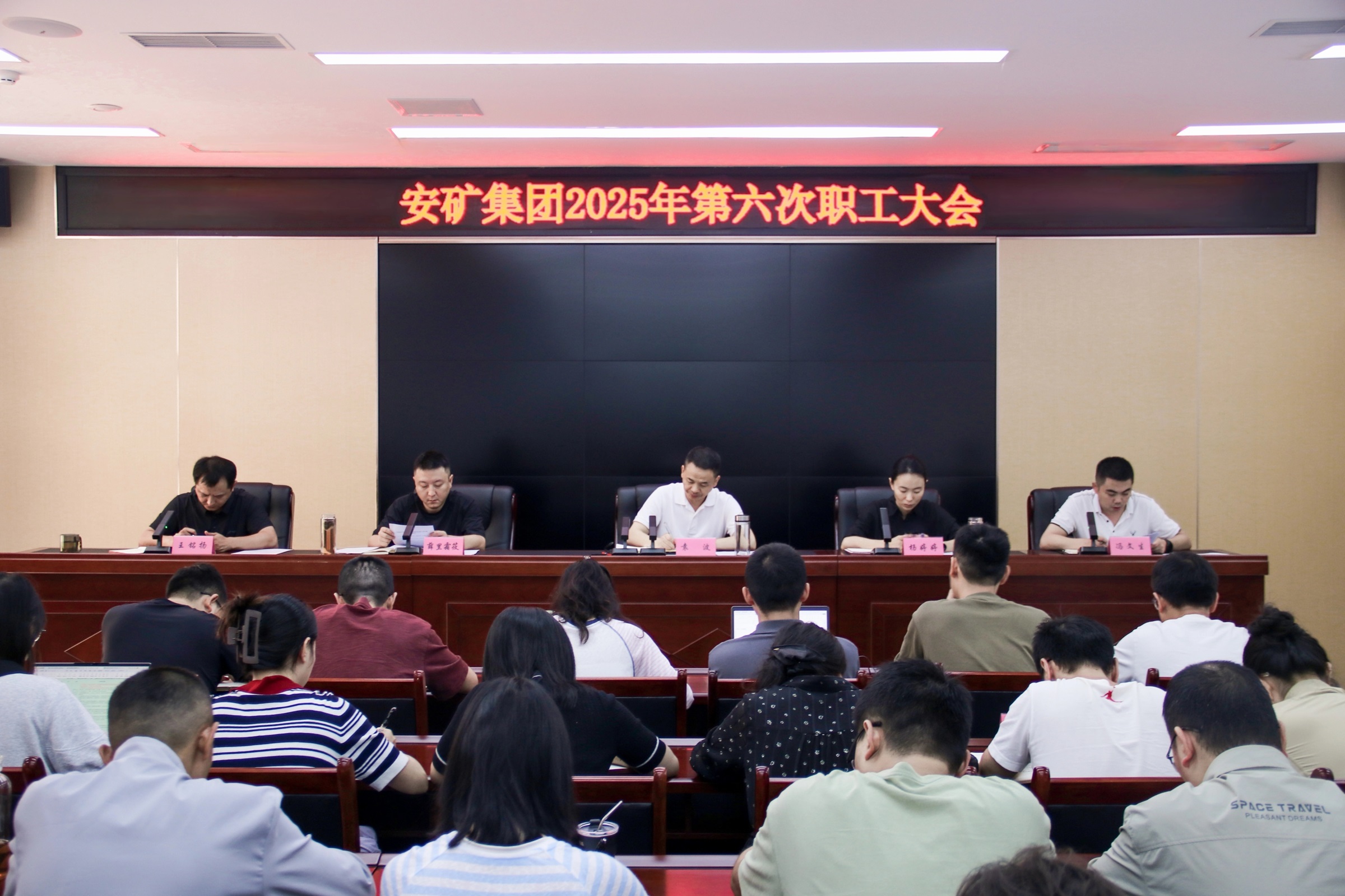 9月5日,安礦集團召開2025年第六次職工大會,集中傳達學(xué)習(xí)習(xí)近平總書記關(guān)于防汛救災(zāi)工作的重要指示精神,以及省委十二屆七次全會、市委八屆十次全會、區(qū)委三屆九次全會精神。黨支部書記、董事長袁波出席會議并講話,黨支部委員、總經(jīng)理、工會主席楊婷婷主持會議。