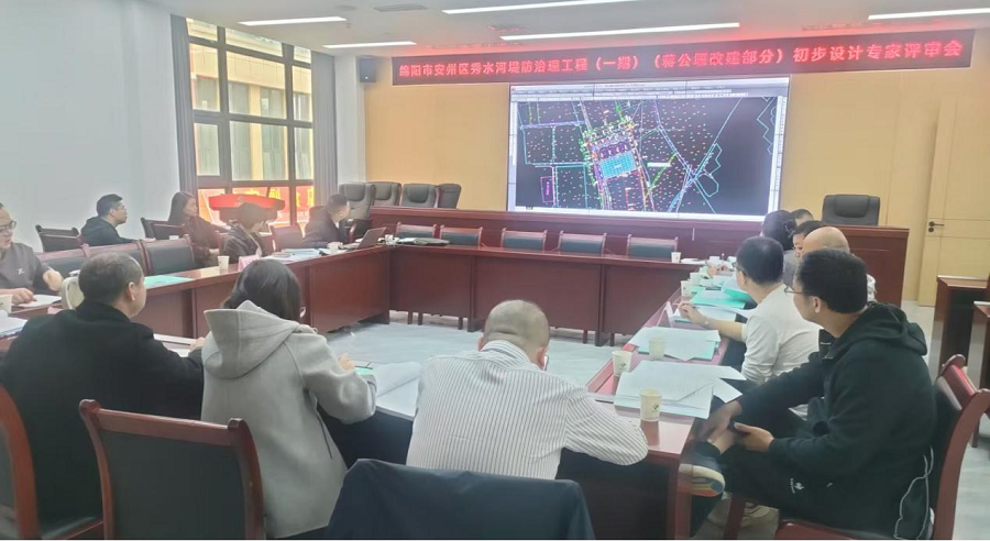 11月12日,公司工程項目部組織召開綿陽市安州區(qū)秀水河堤防治理工程(一期)(蔣公堰改建部分)初步設計專家評審會。(素材來源:工程項目部 袁慶)